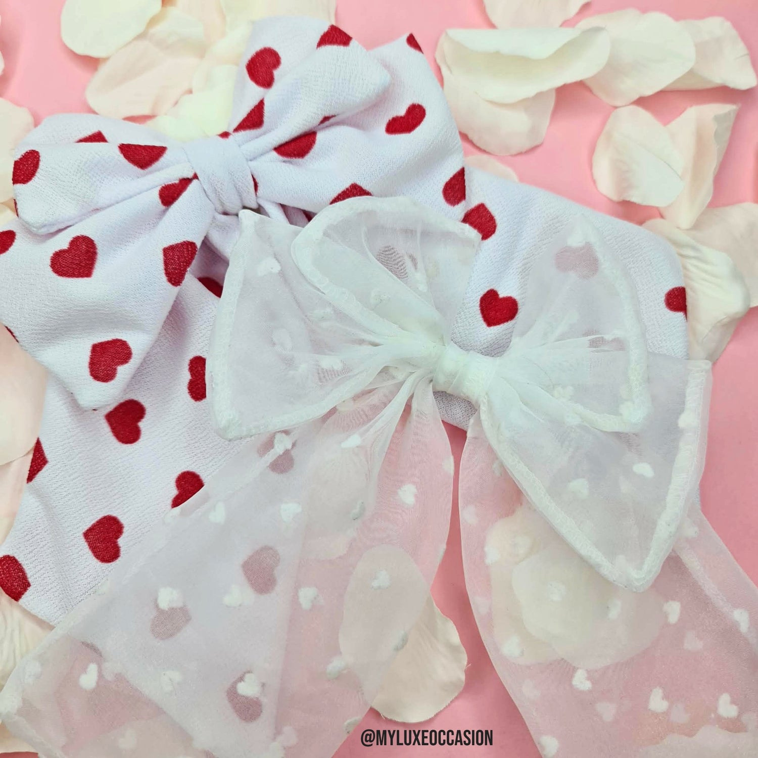 Heart Print Scrunchie/ Sheer White Organza Scrunchie